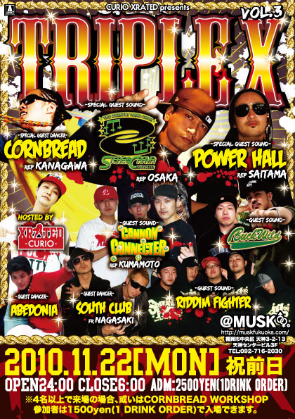 ※4名以上で来場の場合、或いはCORNBREAD WORKSHOP参加者は1500yen(1 DRINK ORDER)で入場できます